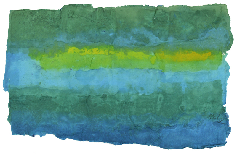 In my recent series Water Levels, a selection from of which I’ll be presenting at the Tabernacle Gallery this June, I’ve use mostly flat colours – jade and blues – to give the feeling of expanding lines. I wanted to give to the illusion of looking down and sideways, to create an abstract interpretation of a real view, which considers elements of temperature, time, air and landscape.