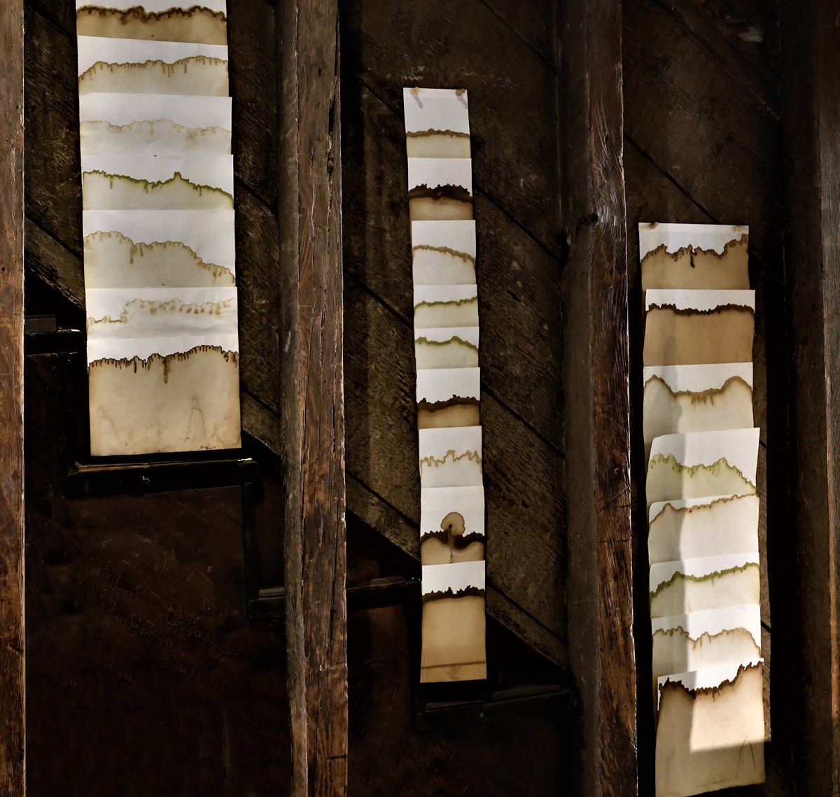 Tidal Traces draws attention to issues relating to the River Thames through a series of free-hanging installation works and time-lapse video.