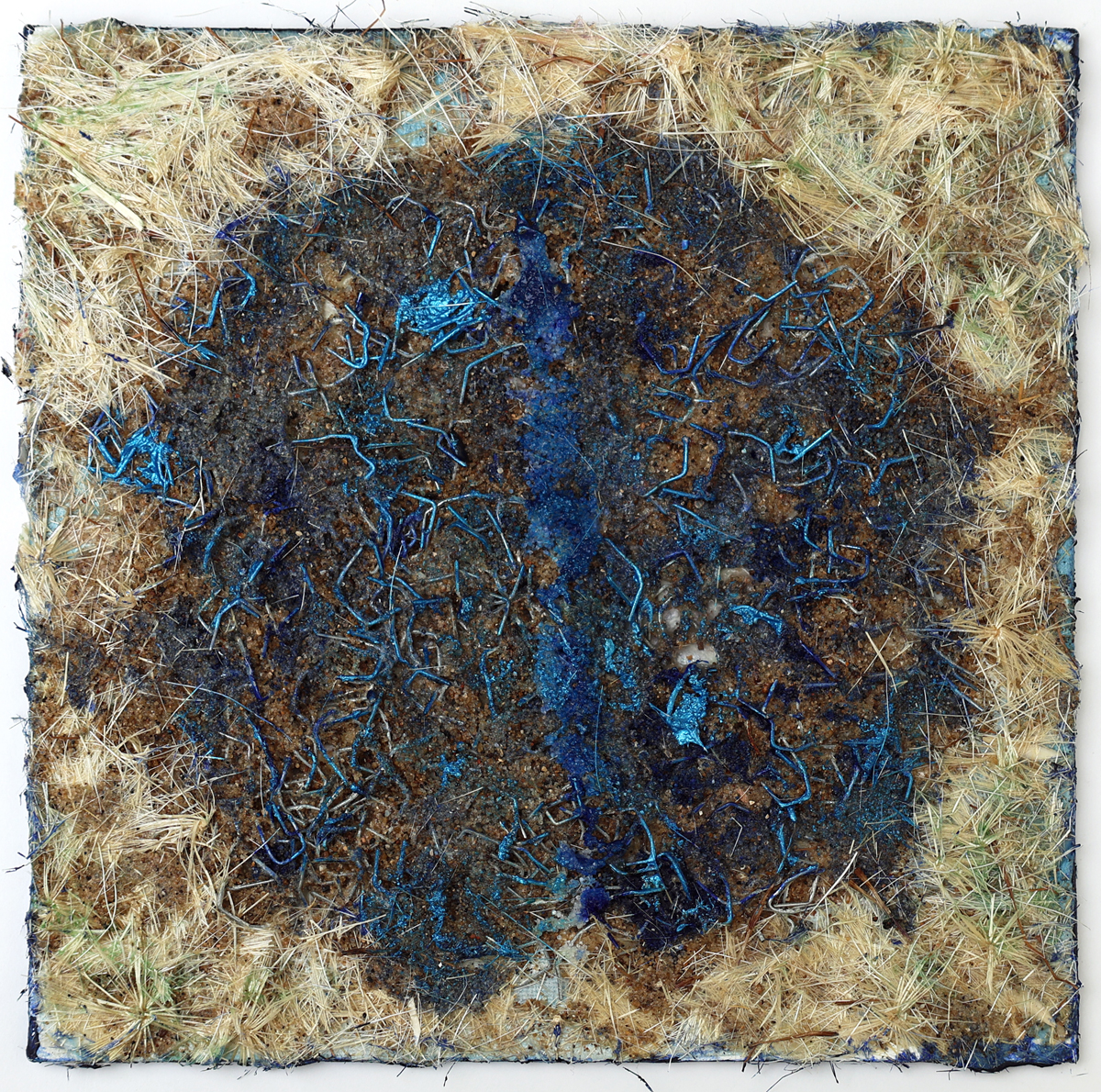 I’m currently working on a series of large canvasses. I’m interested in the technique used in Iranian mosques where gold leaf is sieved to create minute balls of gold. An Iranian restorer explained to me how she uses a restorer’s sieve to achieve the same results. In place of a sieve, I’ve used a strainer, using a soft paintbrush in a circular motion to create points of light.