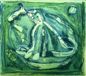 A companion piece to ‘Verso l’isola di Murano‘, ‘Irlandese con currach’ uses a precise palate of earthy colours to comment on ideas of tradition and survival linked to landscape.