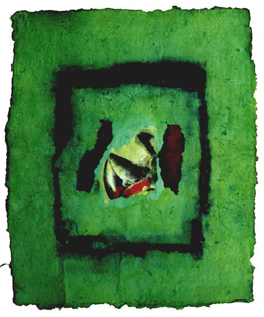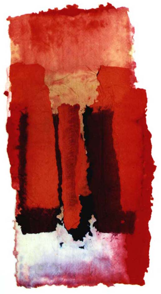 The dyed paper pulp works in the series incorporate various materials – fabric, leather, metal foil, organic material, as well as the use of transfer printing and letterpress.