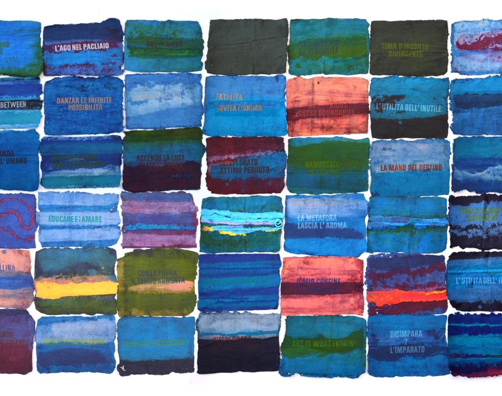 Irma Irsara works in a variety of media, but with her own distinctive style. Her recent pulp works are created by layering dyed fibre pulp using handmade paper techniques, at a point where art meets craft. Having grown up among the beautifully chromatic Dolomites, Irma Irsara developed a language of colour