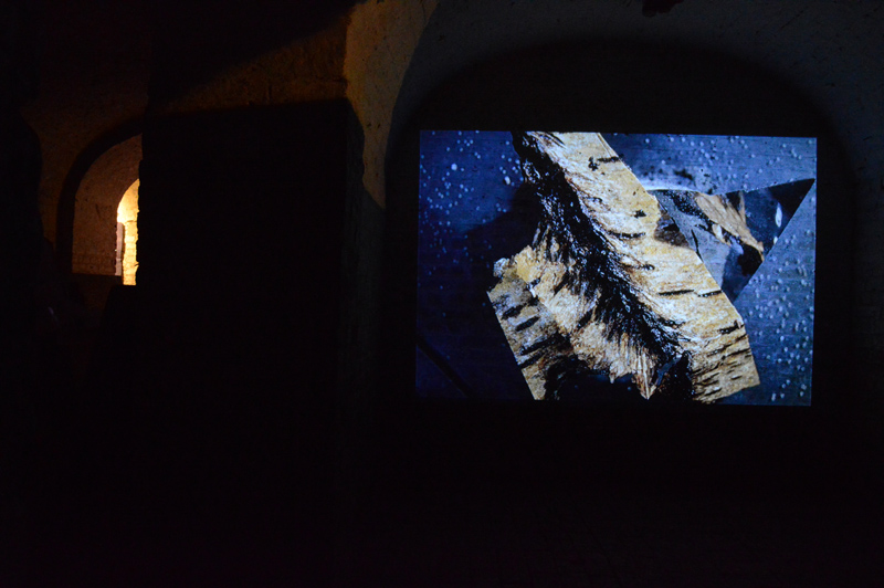 An experimental, ever-changing art piece in the Victorian ice wells at the London Canal Museum. Work was produced in the space on a daily basis, using ice forms, melanix, organic material, video and lights, to create a time-based installation which reflects shifting and changing geographical boundaries as a result of climatic conditions.