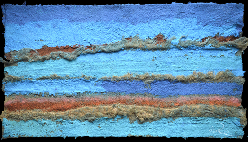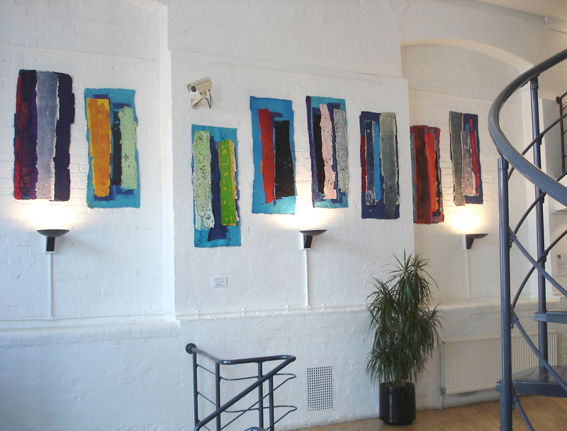Rising water levels – evident even along the local London canals – is the theme of a series of paper pulp works, a selection of which I’m showing at the London Canal Museum. As well as signifying the water line, the title refers to the ‘watermark’ effect incorporated in each of the paper pulp works, achieved by varying the thickness of the fibre during the making process.