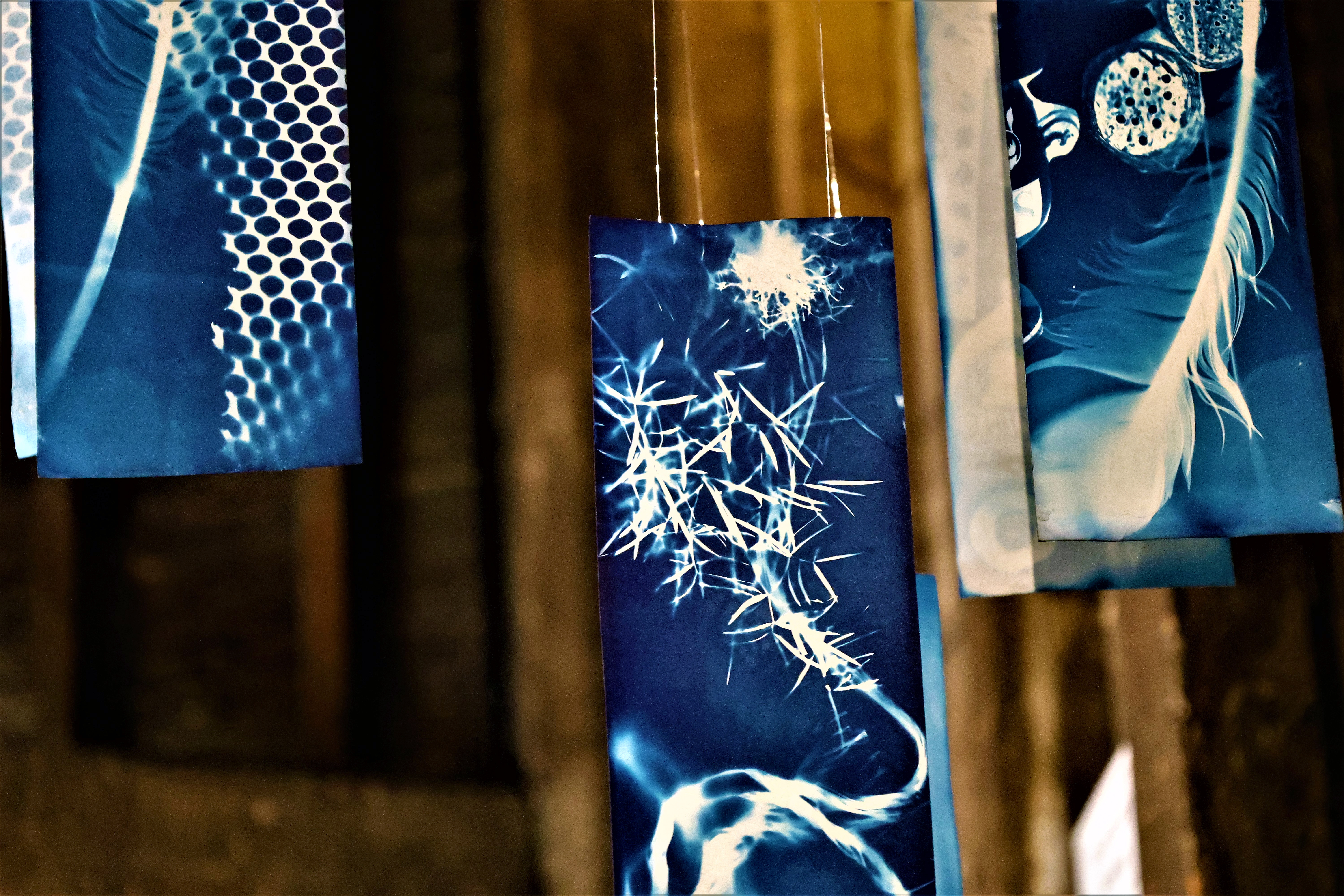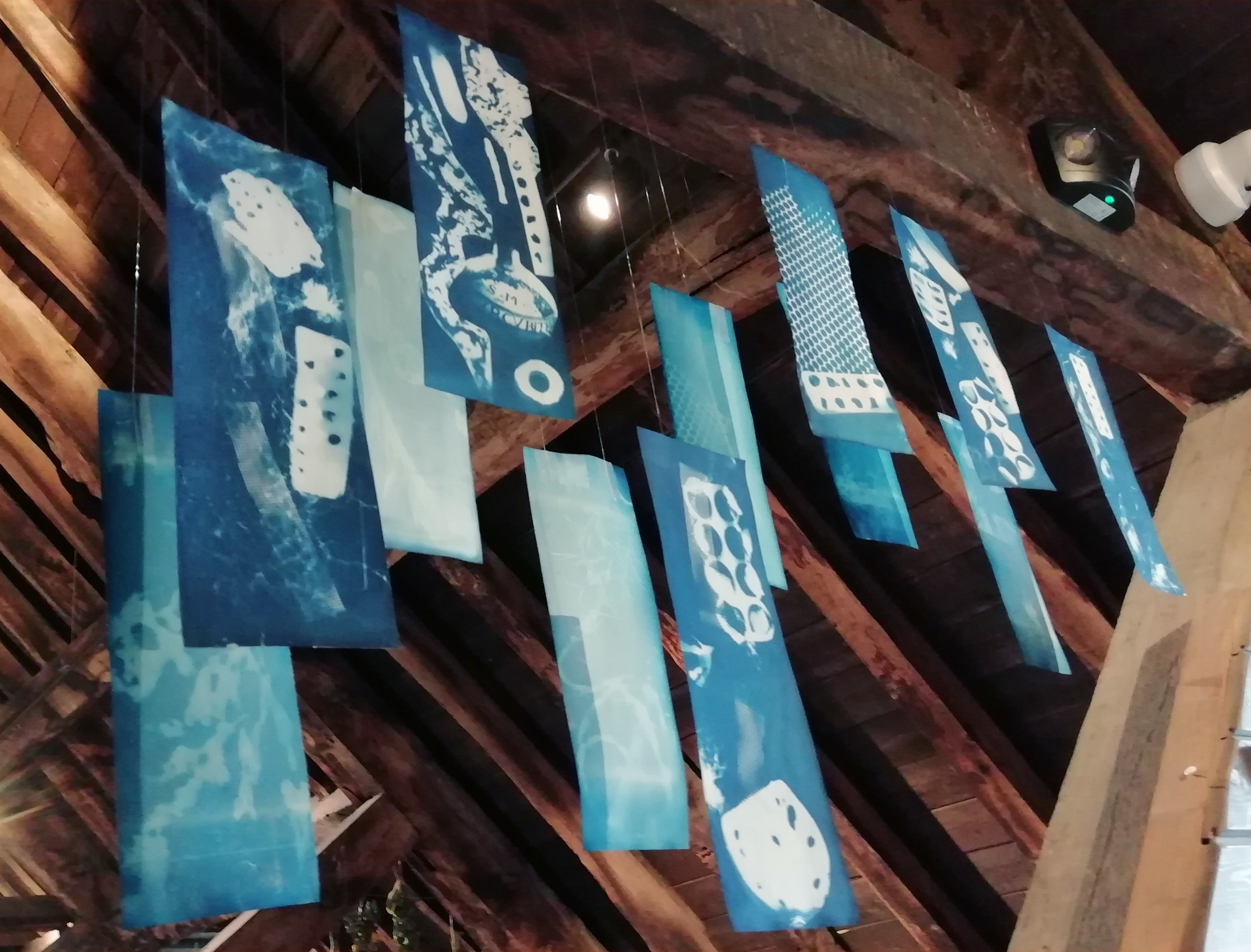 I’ve used debris recovered from the foreshore at various points along the river – plastic netting, nails, sand, silt, aged wood, charcoal, algae, bones – to create impressions using cyanography, chromatography and eco-printing to represent both the visible and the invisible with particular reference to micro fibre plastic and pharmaceutical contamination.