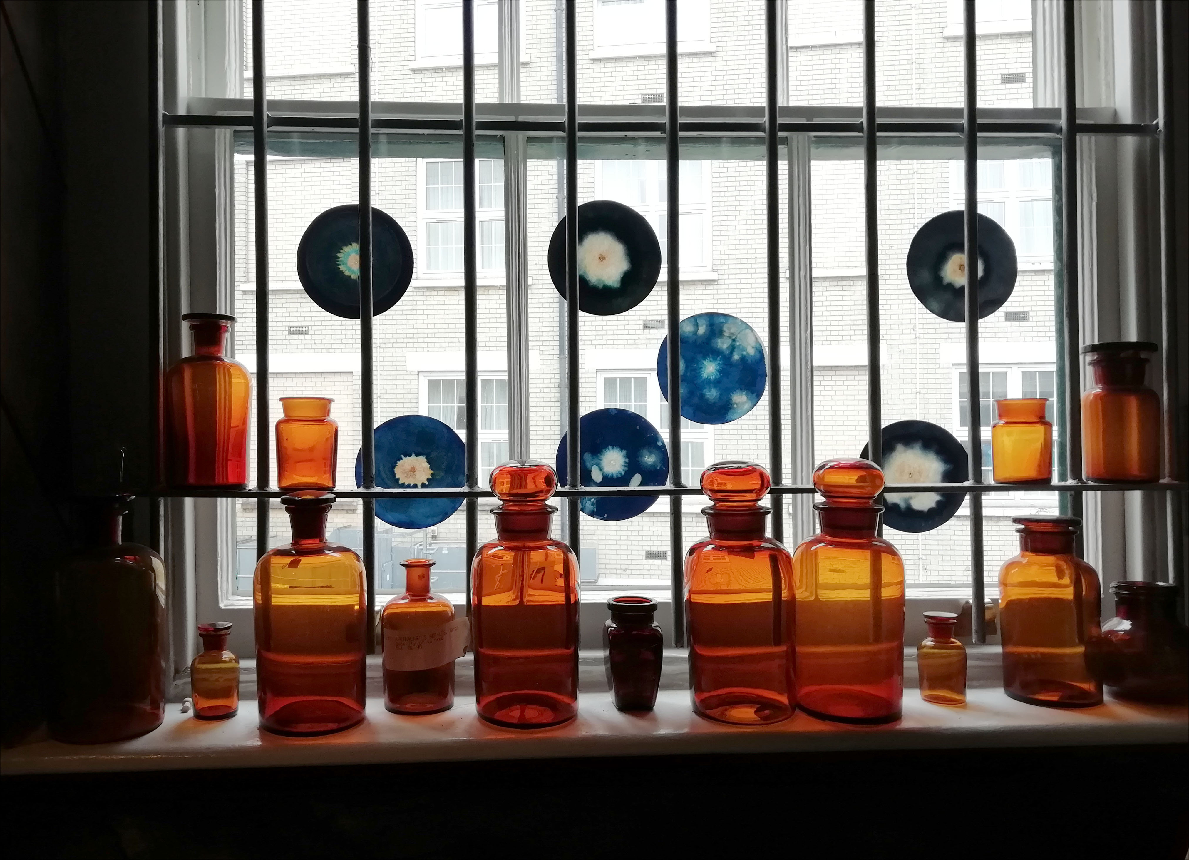 The project continues my exploration of environmental issues looking at material that finds its way into the Thames either through natural phenomena or human activity, and how this impacts on the health of the river’s ecosystem and its effect on the surrounding population. I’ve used debris recovered from the foreshore at various points along the river – plastic netting, nails, sand, silt, aged wood, charcoal, algae, bones – to create impressions using cyanography, chromatography and eco-printing to represent both the visible and the invisible with particular reference to micro fibre plastic and pharmaceutical contamination.